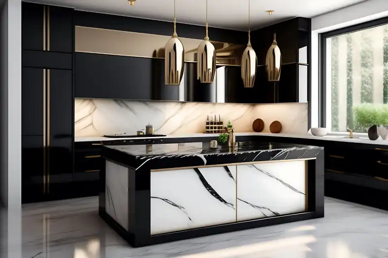 The most popular choices are Calacatta or Carrara marble for their classic veining and warmth, quartzite for its marble-like beauty with greater durability, and engineered quartz for a low-maintenance alternative that closely mimics natural stone. For dramatic impact, high-end designs increasingly favor Nero Marquina—a bold black marble with white veining. The best choice depends on how heavily you use the kitchen, since acidic ingredients can etch natural marble.