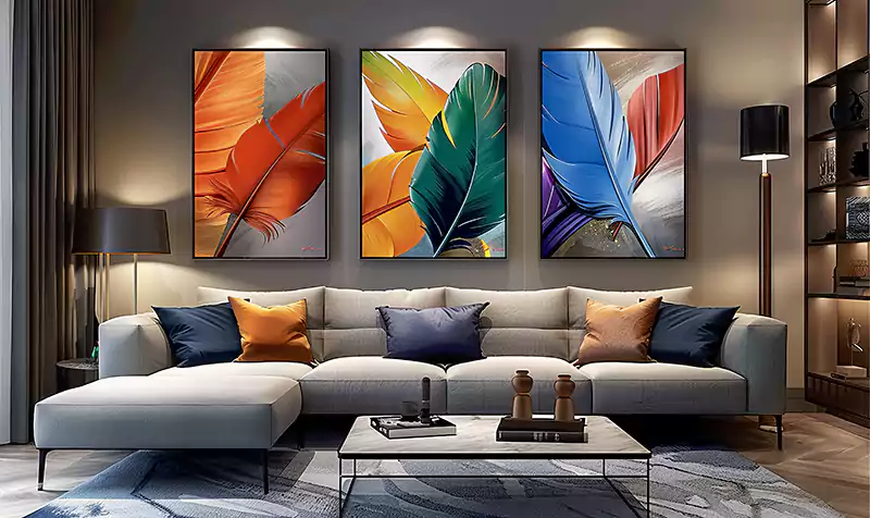 Pick artwork that either complements or contrasts your existing colors. You can match accent tones in your décor or use bold art pieces to create a focal point.