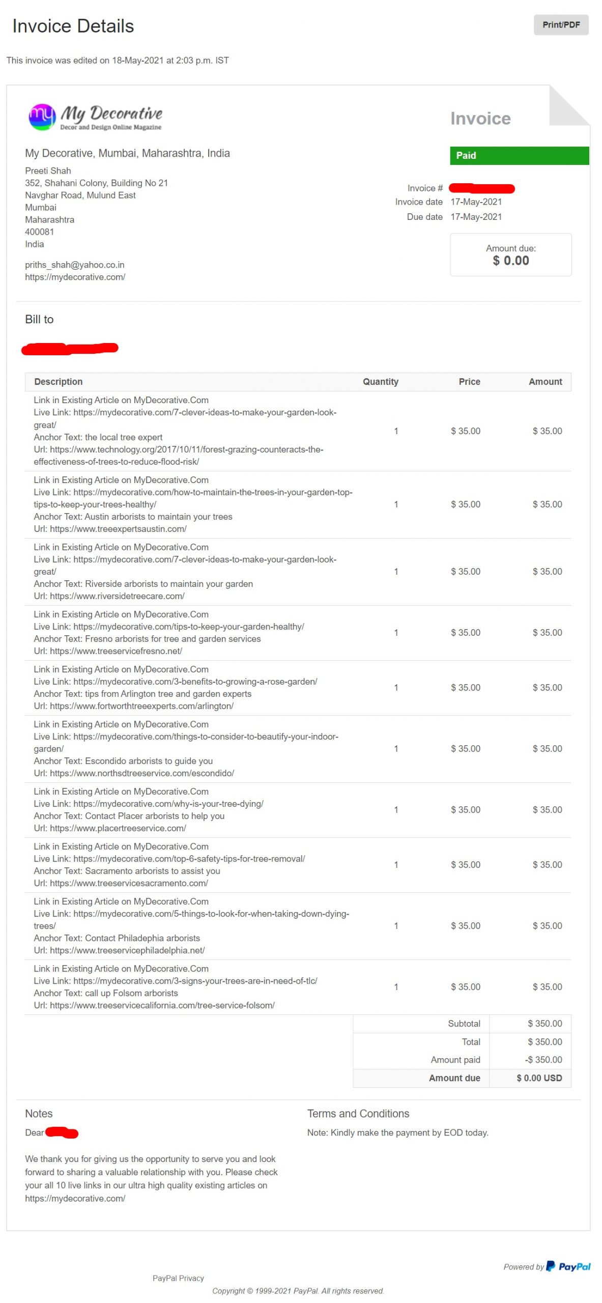 MD 10 Link Insertion Invoice