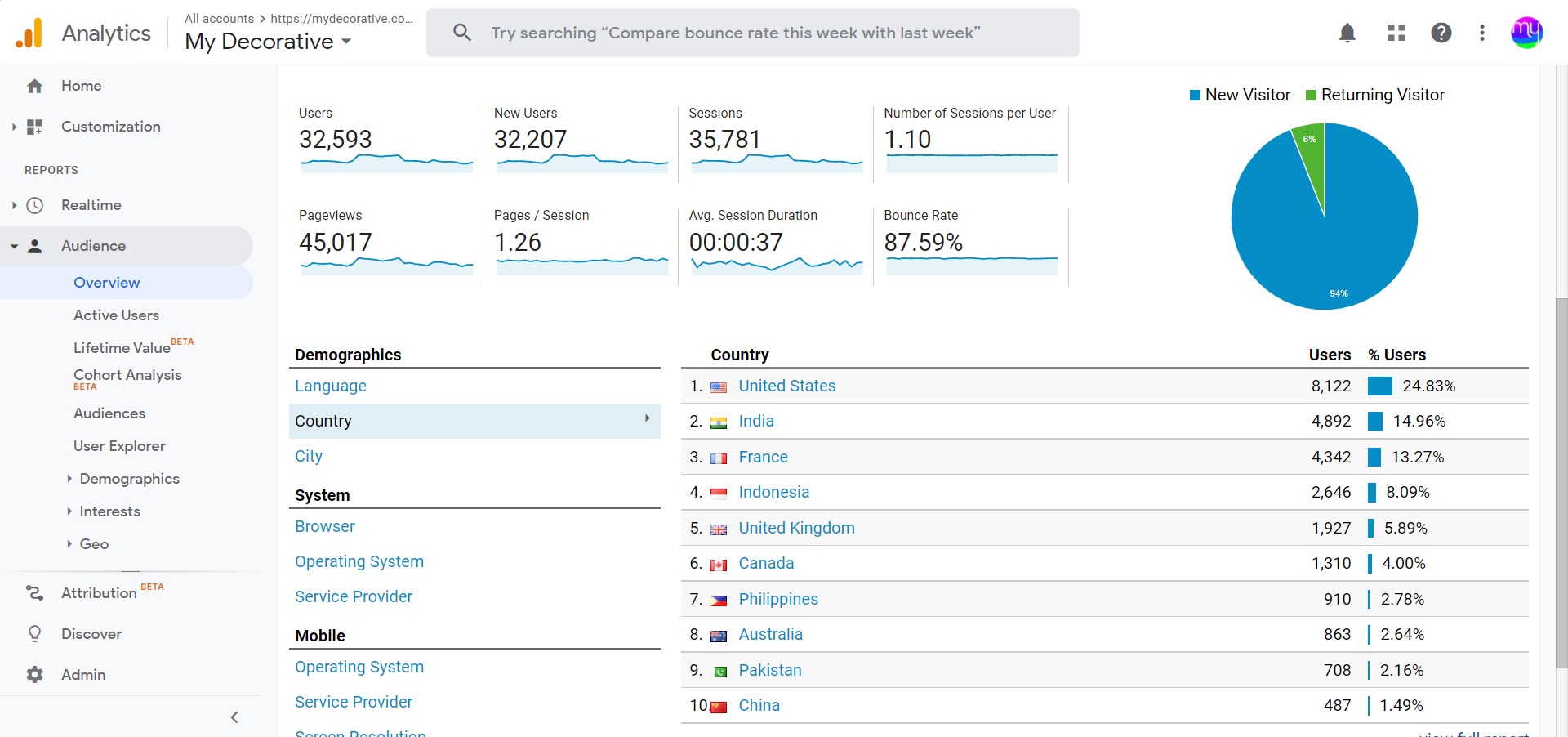 MyDecorative.Com Google Analytics Traffic for May 2021